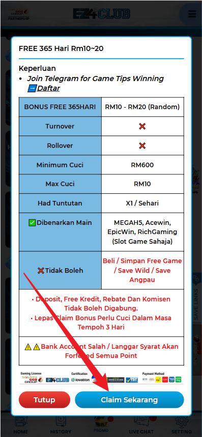 How to Claim EZ4CLUB Free Credit 365 RM10?